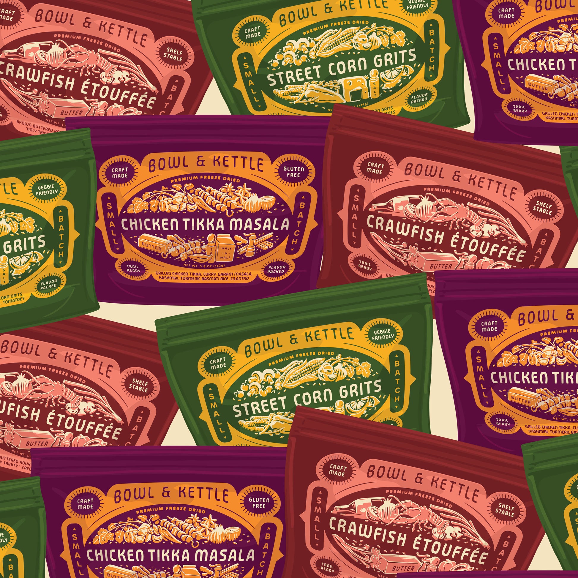 SAVE 15%! Built for big miles and big adventures. The Thru-Hike Mega Bundle comes with 120 servings featuring a balanced assortment of all three Bowl & Kettle meals: Chicken Tikka Masala, Mexican Street Corn Grits, and Crawfish Étouffée. Ideal for long-distance hikers, overlanders, trail angels, or anyone planning a season of serious backcountry time. These meals are lightweight, nutrient-dense, and made with real ingredients for fuel you can count on from day 1 to day 120.